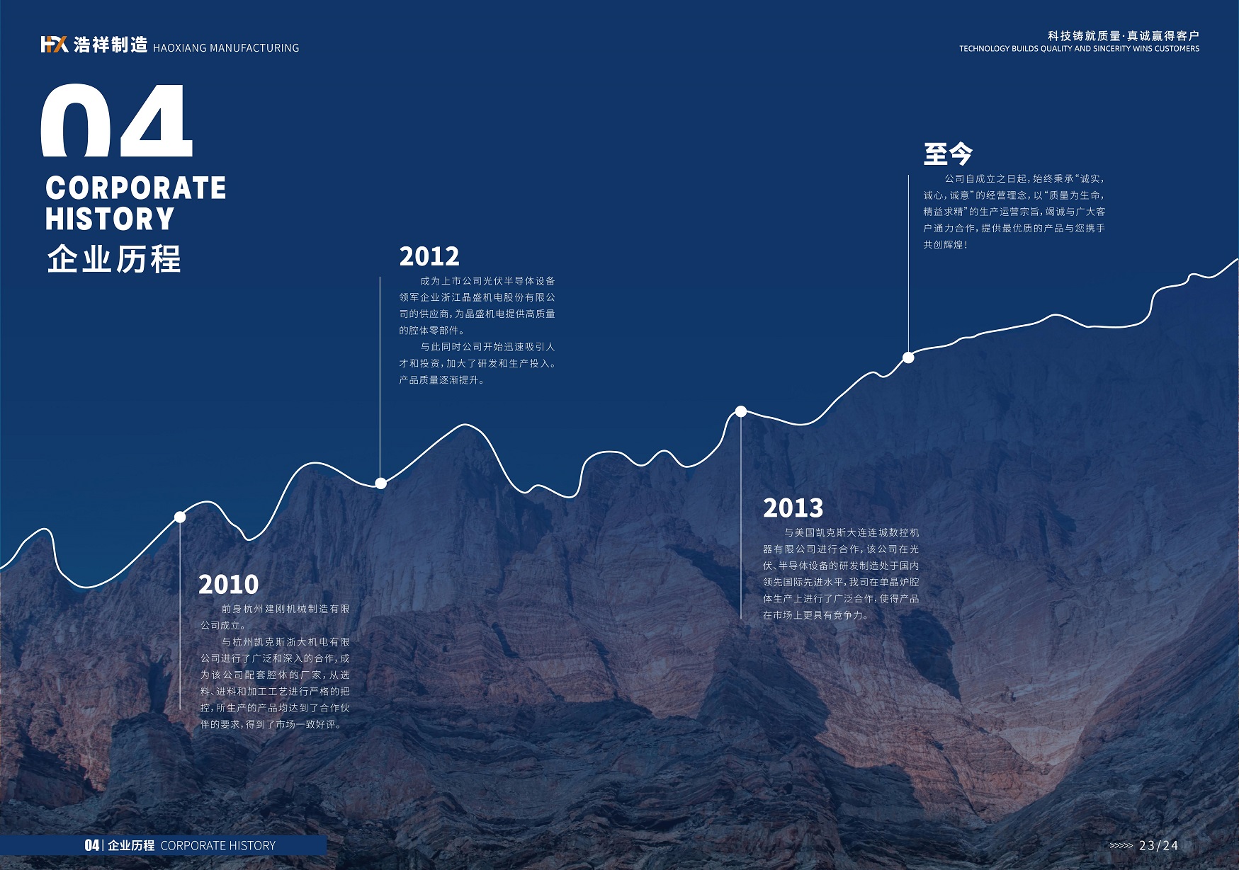 开云体育下载 前身杭州建刚机械制造有限公司,位于浙江省湖州市德清县钟管镇工业开发区,地理位置条件优越,交通十分便利,厂区占地面积5000平米。前身杭州建刚机械制造有限公司成立于2010年,经过几年的发展公司从一个小厂跨入了年产值几千万的规模企业。公司员工有70人,其中管理人员10人,质量管理人员6人,车间加工人员45人,焊接技工10人。 公司经营的主要产品:半导体和光伏单晶炉、多晶炉、蓝宝石炉腔体及其它加工产品。从2010年开始与杭州凯克斯浙大机电有限公司进行了广泛和深入的合作,成为该公司配套腔体的厂家,从选料、进料和加工工艺进行严格的把控,所生产的产品均达到了合作伙伴的要求,得到了市场一致好评。2012年成为上市公司光伏半导体设备领军企业浙江晶盛机电股份有限公司的供应商,为晶盛机电提供高质量的腔体零部件。2013年又与美国凯克斯大连连城数控机器有限公司进行合作,该公司在光伏、半导体设备的研发制造处于国内领先国际先进水平,我们在单晶炉腔体生产上进行了广泛合作,使得产品在市场上更具有竞争力。公司凭借雄厚的制造实力和先进的制造工艺,完善的管理及服务赢得了客户广泛好评。 公司主要加工设备: 1.6米和2米立车、大型镗床、630车床、立式加工中心、龙门加工中心、摇臂钻、机器人激光切割、氩弧焊机等一大批专用加工设备和全自动振动消应机、进口热成像仪、氦检漏仪、着色探伤仪等一批检测设备。 开云体育下载 自成立之日起,始终秉承“诚实,诚心,诚意”的经营理念,以“质量为生命,精益求精”的生产运营宗旨,竭诚与广大客户通力合作,提供最优质的产品与您携手共创辉煌!